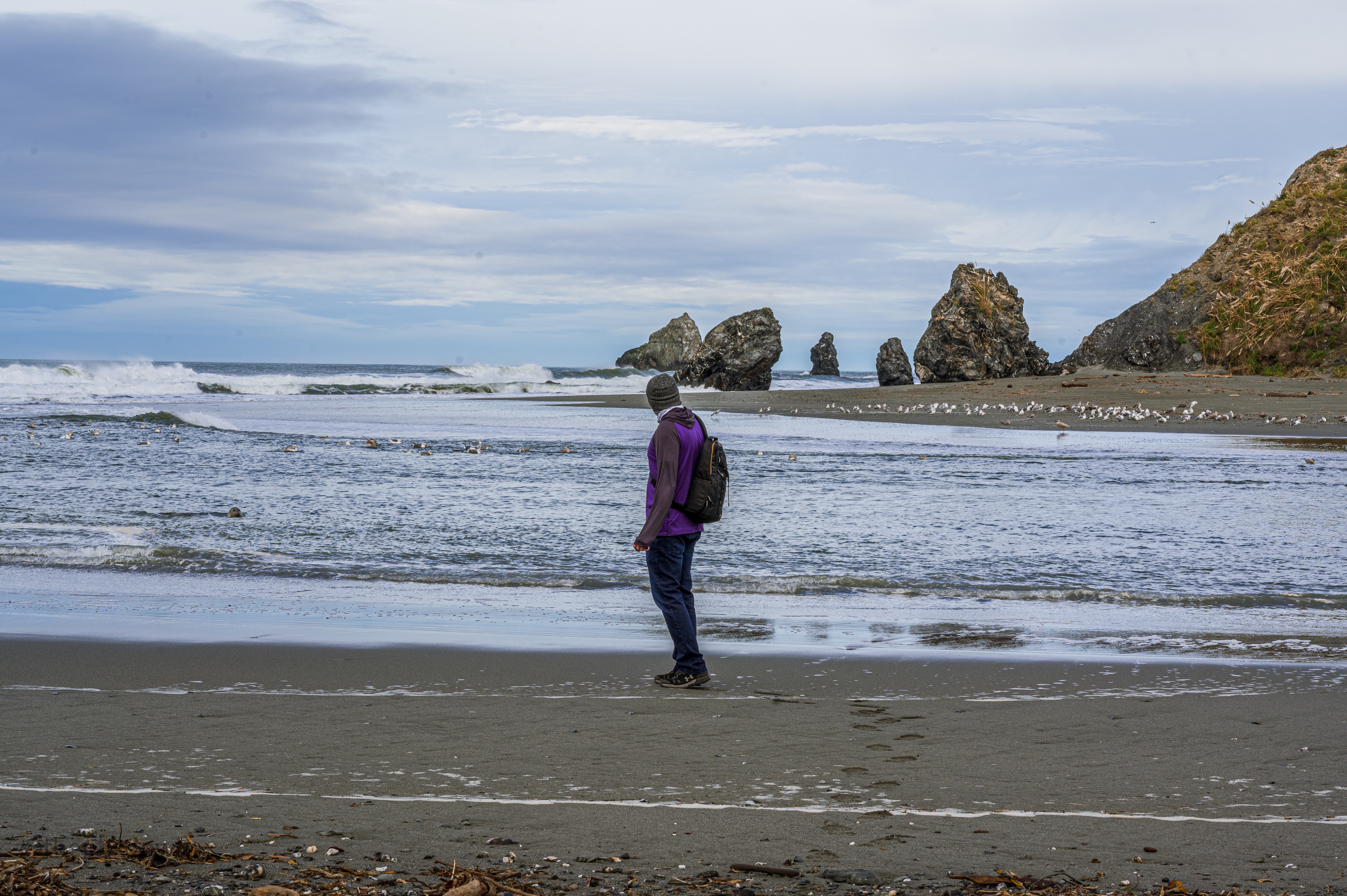 Just outside the main city, we explored the coastal beaches. The beaches seem like some flipped or negative version of the sun-soaked and vibrant beaches of Southern California. The north is gray and desolate. Cloud-covered and eerie. Quiet and cold. But they have their own mesmerizing allure and we happily found beauty within the bleakness.